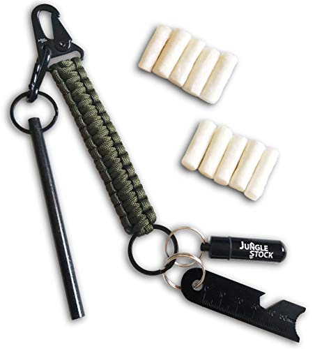 WITH THE JUNGLE STOCK FIRE STARTER KIT, YOU'RE WELL EQUIPPED TO START A FIRE IN ANY SURVIVAL SITUATION - The multi-function paracord keychain includes 10 feet of high strength, lightweight paracord. The weather proof cotton tinder pod insures that your tinder will remain dry. The steel striker also includes…