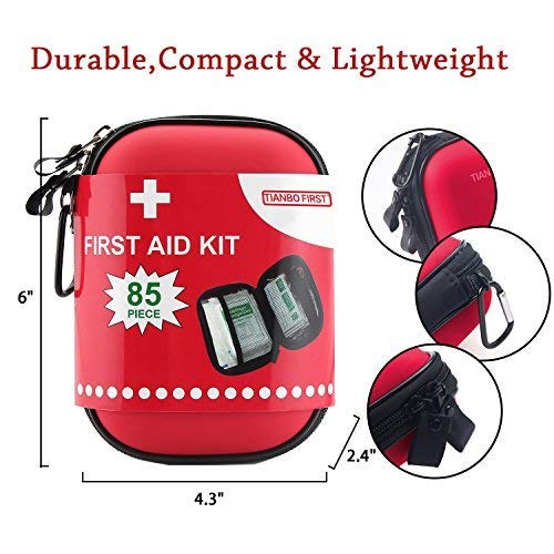 - BEST VALUE: First Aid Emergency Kit with 85 Medical Grade items.Compact & Waterproof Case (size 6″ x 4.3″x 2.4″ )